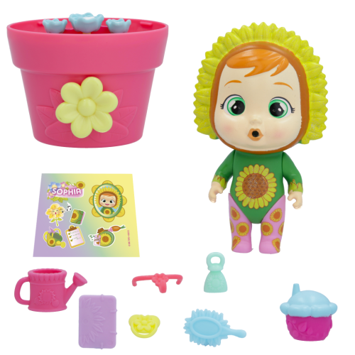 Edícia Happy Flowers od Cry Babies Magic Tears je tu! K dispozícii je 8+ kvetinových postavičiek, ktoré môžeš zbierať! A každá vonia ako kvetina, ktorú reprezentuje! Balenie predstavuje kvetináč. Otvor ho, odstráň cukrovú vatu, otoč špeciálnym ciferníkom a vo vnútri kvetináča kúzelne vyrastie kvetina. Každá bábika má so sebou v balení až 10 tematických doplnkov. Paničku je možné napojiť vodou pomocou pribalenej fľaštičky. Keď je bábika plná vody, po stlačení bruška začne roniť slzy. Nie je možné vybrať druh, dodávame podľa skladovej dostupnosť.