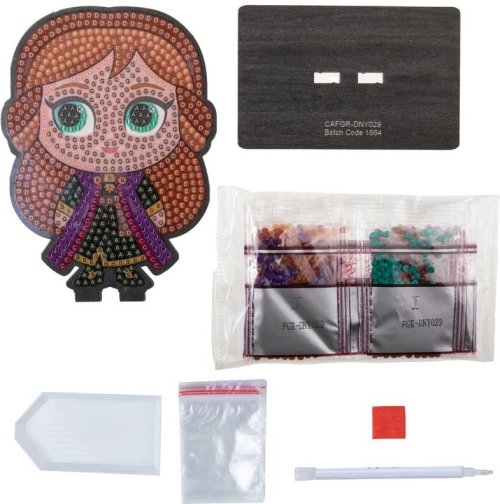 Diamantové maľovanie je skvelý spôsob relaxácie, je to kreatívna zábava pre každého. Pomocou aplikačného pera nanášate kamienok za kamienkom na označené miesta. Balenie obsahuje: drevenú dosku v tvare postavičky s predtlačeným obrázkom, drevený stojan, pero na aplikáciu kamienkov, misku, vosk na nalepenie a sadu farebných kamienkov.