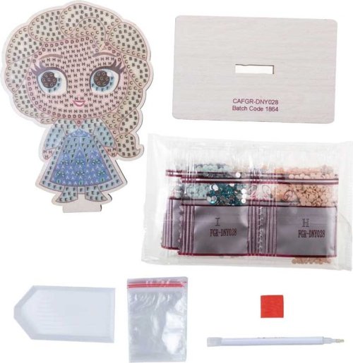 Diamantové maľovanie je skvelý spôsob relaxácie, je to kreatívna zábava pre každého. Pomocou aplikačného pera nanášate kamienok za kamienkom na označené miesta. Balenie obsahuje: drevenú dosku v tvare postavičky s predtlačeným obrázkom, drevený stojan, pero na aplikáciu kamienkov, misku, vosk na nalepenie a sadu farebných kamienkov.