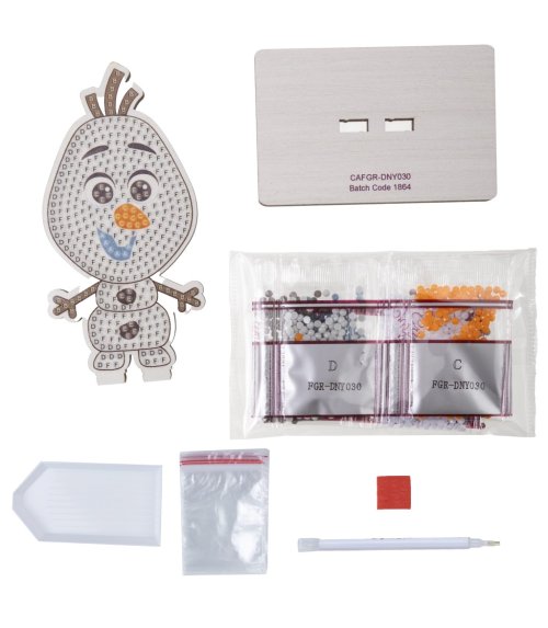 Diamantové maľovanie je skvelý spôsob relaxácie, je to kreatívna zábava pre každého. Pomocou aplikačného pera nanášate kamienok za kamienkom na označené miesta. Balenie obsahuje: drevenú dosku v tvare postavičky s predtlačeným obrázkom, drevený stojan, pero na aplikáciu kamienkov, misku, vosk na nalepenie a sadu farebných kamienkov.
