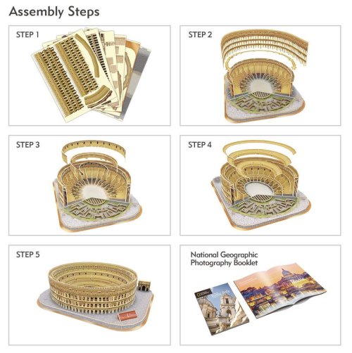 3D puzzle - stavebnica zo série National Geographic od CubicFun vyrobená zo špeciálneho materiálu - asi 3mm hrubej peny potiahnuté laminovaným potlačeným papierom. Súčasťou balenia je cestovný sprievodca po talianskom Ríme v angličtine.