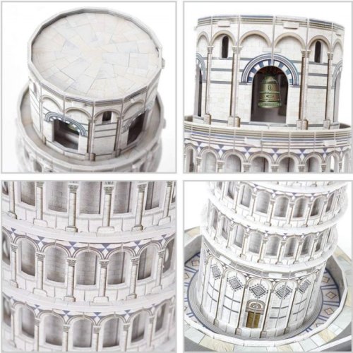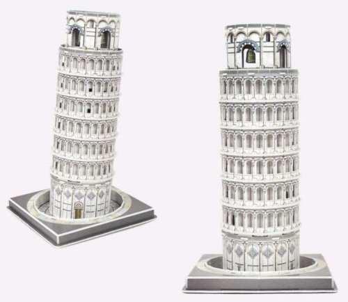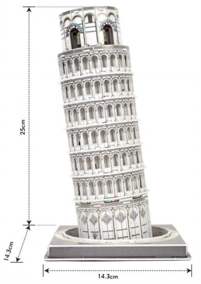Šikmá veža (Torre pendente) sa nachádza v Taliansku v Pise. Stojí na Námestí zázrakov (Piazza dei Miracoli), spoločne s dómom a kruhovým baptisteriom (krstnou kaplnkou). Je vysoká 56 metrov. Veža je postavená z bieleho mramoru. Výstavba samostatne umiestnenej zvonice bola zahájená v roku 1173, ale už krátko po začiatku stavby v roku 1173 sa začala nakláňať. Dôvodom sú plytko založené základy v mäkkej hornine. Zaujímavosťou je, že veža sa pôvodne nakláňala na opačnú stranu. Stavitelia sa rozhodli náklon vyrovnať tým, že do zeme k základom hádzali kamene a vetvy. Plán síce vyšiel a veža sa vyrovnala, ale neskôr sa začala nakláňať znova, tentoraz na opačnú stranu. Viac na Wikipédii Rozmer zloženého puzzle cca 25,1 x 14,3 x 14,3 cm