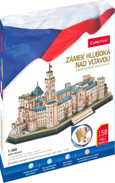Jedna z najkrajších českých pamiatok teraz aj ako 3D puzzle! 3D puzzle - stavebnica od CubicFun vyrobená zo špeciálneho materiálu - asi 3 mm hrubej peny potiahnuté laminovaným potlačeným papierom. Zostavovanie 3D puzzle Cubicfun je zábavou pre celú rodinu. Hotové modely môžu byť zberateľským a dekoratívnym doplnkom bytu alebo detskej izby. Dieliky sa k sebe zostavujú pomocou návodu bez použitia lepidla a nožníc - predražené dieliky iba jednoducho vylomíte z archu. Obtiažnosť 5 , 6 Orientačný čas na zostavenie: 150 - 180 minút Rozmer zloženého puzzle cca 39,5 x 24,3 x 19,2 cm