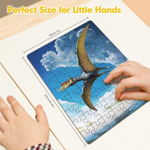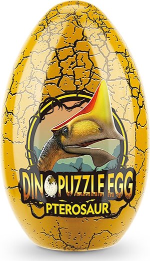 Dvojitá zábava - na jednej strane puzzle ilustrácie dinosaura, na druhej strane abstraktný vzor s dinosaurími fosíliami odolné kovové vajíčko pre bezpečné uloženie puzzle vyrobené z pevného tvrdeného papiera, ktorý sa neroztrhne ani nezlomí potlačené netoxickými atramentmi na sójovej báze perfektný veľkonočný darček narodeninám alebo na Vianoce
