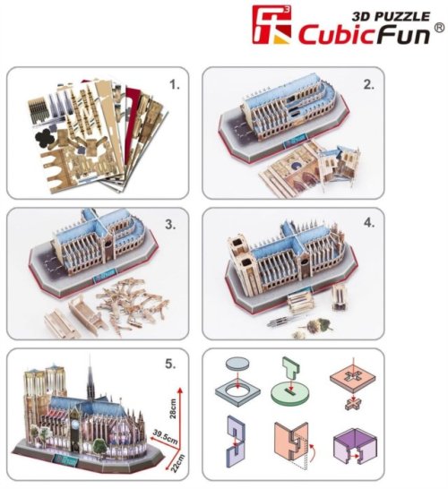 Zostavovanie 3D puzzle Cubicfun je zábavou pre celú rodinu. Hotové modely môžu byť zberateľským a dekoratívnym doplnkom bytu alebo detskej izby. Dieliky sa k sebe zostavujú pomocou návodu bez použitia lepidla a nožníc - predražené dieliky iba jednoducho vylomíte z archu.