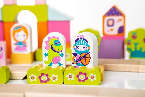 CUBIKA je nová značka drevených hračiek vyrobených iba z ekologicky pestovaného dreva s veľmi precíznym opracovaním a ľúbivým dizajnom. Stavebnice pre holky Rozprávkové mesto obsahuje 55 drevených hracích kociek, z ktorých možno postaviť rozprávkové mesto, v ktorom nesmie chýbať ani princezná, drak a rytier. Kocky sú zabalené v darčekovej krabici, do ktorej je možné po hre všetko ľahko upratať. Tvarovo sú kocky ideálne predovšetkým na stavbu domov, mostov, zámkov a rôznych veží podľa vlastnej fantázie. Sortiment hračiek značky CUBIKA pomáha deťom rozvíjať predovšetkým senzomotorické schopnosti a zručnosti, logické myslenie, kreativitu, predstavivosť a rôzne poznávacie znalosti. Hračky sú vyrobené z najkvalitnejšieho javora a buku a na farbenie sa používajú tiež vysoko kvalitné farby na vodnej báze, ktoré sú úplne bezpečné pre deti a nemajú žiadny zápach. Všetky výrobky tejto značky majú nemecký certifikát TÜV a sú vyrobené podľa európskej normy pre bezpečnosť hračiek EN 71. Nevhodné pre deti do 2 rokov. Vyrobené v Európe.