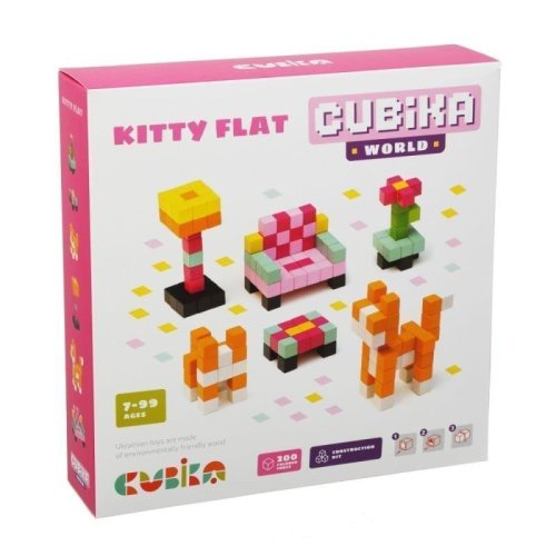 CUBIKA je nová značka drevených hračiek vyrobených iba z ekologicky pestovaného dreva s veľmi precíznym opracovaním a ľúbivým dizajnom. Pixel "Izba s mačičkou" - drevená 3D stavebnica 200 kociek je tematická kreatívna sada, ktorá umožňuje z kociek o veľkosti 1 x 1 cm poskladať vyobrazený motív na krabici. Jednotlivé farebné kocky sa k sebe lepia pomocou malých obojstranných lepiacich koliesok podľa priloženého návodu. Sortiment hračiek značky CUBIKA pomáha deťom rozvíjať predovšetkým senzomotorické schopnosti a zručnosti, logické myslenie, kreativitu, predstavivosť a rôzne poznávacie znalosti. Hračky sú vyrobené z najkvalitnejšieho javora a buku a na farbenie sa používajú tiež vysoko kvalitné farby na vodnej báze, ktoré sú úplne bezpečné pre deti a nemajú žiadny zápach. Všetky výrobky tejto značky majú nemecký certifikát TÜV a sú vyrobené podľa európskej normy pre bezpečnosť hračiek EN 71. Nevhodné pre deti do 7 rokov. Vyrobené v Európe.