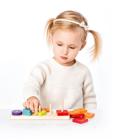 CUBIKA je nová značka drevených hračiek vyrobených iba z ekologicky pestovaného dreva s veľmi precíznym opracovaním a ľúbivým dizajnom. Triedime tvary VI je drevená skladačka s 15 farebnými perforovanými geometrickými tvarmi, ktoré sa umiestňujú na štvorcovú základňu. Jednotlivé tvary majú aj svoje opakujúce sa farby, ktoré sa deti touto hrou tiež učia rozlišovať. Sortiment hračiek značky CUBIKA pomáha deťom rozvíjať predovšetkým senzomotorické schopnosti a zručnosti, logické myslenie, kreativitu, predstavivosť a rôzne poznávacie znalosti. Hračky sú vyrobené z najkvalitnejšieho javora a buku a na farbenie sa používajú tiež vysoko kvalitné farby na vodnej báze, ktoré sú úplne bezpečné pre deti a nemajú žiadny zápach. Všetky výrobky tejto značky majú nemecký certifikát TÜV a sú vyrobené podľa európskej normy pre bezpečnosť hračiek EN 71. Nevhodné pre deti do 18 mesiacov. Vyrobené v Európe.