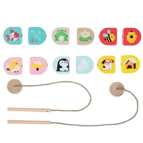 CUBIKA je značka drevených hračiek vyrobených iba z ekologicky pestovaného dreva s veľmi precíznym opracovaním a ľúbivým dizajnom. Navliekací set Kde bývame je ideálnou hrou na precvičenie jemnej motoriky a logického myslenia. Súprava ponúka 12 drevených navliekacích prvkov, ktoré tvoria 6 párov a dve šnúrky s dreveným kolíkom na prestirkovanie na jednej strane a zarážkou na druhej strane. Cieľom je nájsť ku každému zvieratku prostredie, kde žije a oba drevené prvky navliecť tak, aby tvorili pár. Sortiment hračiek značky CUBIKA pomáha deťom rozvíjať predovšetkým senzomotorické schopnosti a zručnosti, logické myslenie, kreativitu, predstavivosť a rôzne poznávacie znalosti. Hračky sú vyrobené z najkvalitnejšieho javora a buku a na farbenie sa používajú tiež vysoko kvalitné farby na vodnej báze, ktoré sú úplne bezpečné pre deti a nemajú žiadny zápach. Všetky výrobky tejto značky majú nemecký certifikát TÜV a sú vyrobené podľa európskej normy pre bezpečnosť hračiek EN 71. Nevhodné pre deti do 3 rokov. Vyrobené v Európe.