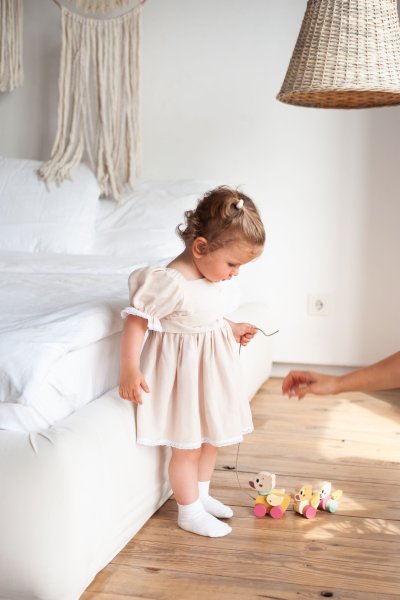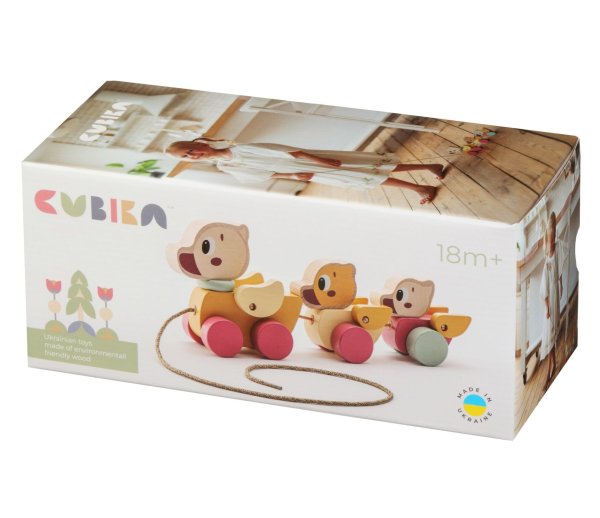 CUBIKA je nová značka drevených hračiek vyrobených iba z ekologicky pestovaného dreva s veľmi precíznym opracovaním a ľúbivým dizajnom a tento výrobok patrí do novej kolekcie vyrobenej v pastelových farbách. Ťahací drevený psík na povrázku je ideálnym spoločníkom na cesty pre malé deti. Vďaka svojej členitej konštrukcii je ako živý. Dĺžka šnúrky cca 60 cm. Sortiment hračiek značky CUBIKA pomáha deťom rozvíjať predovšetkým senzomotorické schopnosti a zručnosti, logické myslenie, kreativitu, predstavivosť a rôzne poznávacie znalosti. Hračky sú vyrobené z najkvalitnejšieho javora a buku a na farbenie sa používajú tiež vysoko kvalitné farby na vodnej báze, ktoré sú úplne bezpečné pre deti a nemajú žiadny zápach. Všetky výrobky tejto značky majú nemecký certifikát TÜV a sú vyrobené podľa európskej normy pre bezpečnosť hračiek EN 71. Odporúčaný vek od 18 mesiacov. Vyrobené v Európe.
