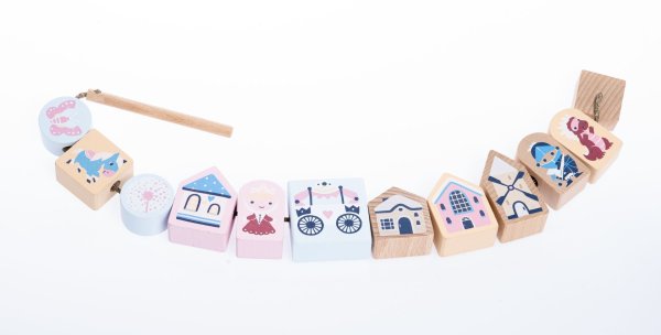 CUBIKA je nová značka drevených hračiek vyrobených iba z ekologicky pestovaného dreva s veľmi precíznym opracovaním a ľúbivým dizajnom a tento výrobok patrí do novej kolekcie vyrobenej v pastelových farbách. Navliekacia rozprávka je ideálnou hrou na precvičenie jemnej motoriky, trpezlivosti a pamäte. Súprava ponúka 12 drevených navliekacích prvkov s rozprávkovou tematikou, jednu 45 cm dlhú šnúrku s dreveným kolíkom na prestrekovanie na jednej strane a zarážkou na druhej strane a 8 predlôh s rôzne zoradenými tematickými prvkami, podľa ktorých deti jednotlivé dieliky navliekajú. Zdatnejší hráči si potom môžu predlohu len prezrieť a skúsiť navliekať naspamäť a vytvárať si tak svoj vlatný rozprávkový príbeh. Sortiment hračiek značky CUBIKA pomáha deťom rozvíjať predovšetkým senzomotorické schopnosti a zručnosti, logické myslenie, kreativitu, predstavivosť a rôzne poznávacie znalosti. Hračky sú vyrobené z najkvalitnejšieho javora a buku a na farbenie sa používajú tiež vysoko kvalitné farby na vodnej báze, ktoré sú úplne bezpečné pre deti a nemajú žiadny zápach. Všetky výrobky tejto značky majú nemecký certifikát TÜV a sú vyrobené podľa európskej normy pre bezpečnosť hračiek EN 71. Nevhodné pre deti do 3 rokov. Vyrobené v Európe.