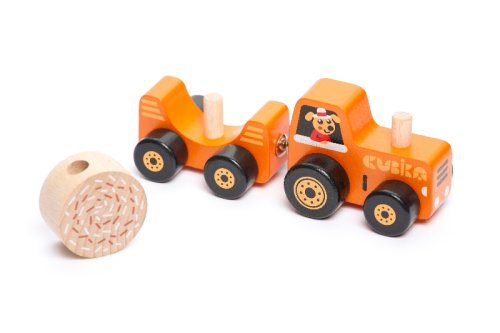 Traktor s vlekom je 3 dielna drevená skladačka s magnetom, ktorý umožňuje ľahké prepojenie jednotlivých dielikov. Balík slamy na vleku je odnímateľným.
