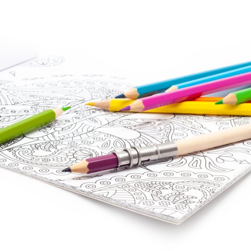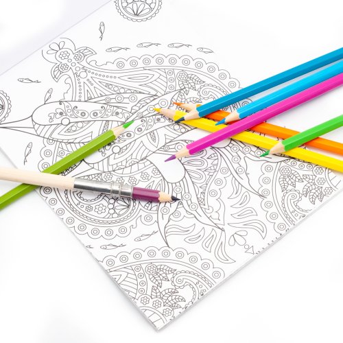 Súprava pasteliek z topoľového dreva v dizajnovom púzdre pre dospelých aj deti s antistresovými omaľovánkami.