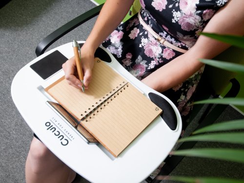 Lapdesk Cuculo je praktickou podložkou pod notebook alebo tablet. Podložku môžete ľahko používať pri sedení vďaka látkovému vankúši vyplnenému PE granulátom. Vďaka nemu sa podložka výborne prispôsobí nohám.