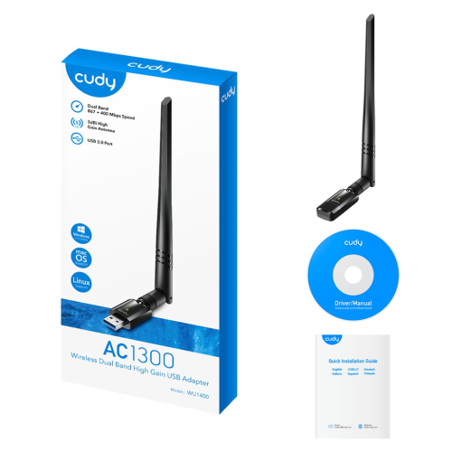 Cudy AC1300 Wi-Fi USB 3.0 sieťová karta, ext. anténa (WU1400)