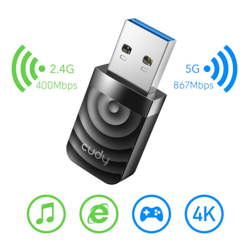 - externý USB adaptér (sieťová karta) pre pripojenie PC/noteboku do bezdrôtovej siete Wi-Fi - podpora IEEE 802.11ac (Wi-Fi 5) s prenosovou rýchlosťou až 867 Mb/s (5 GHz) a 400 Mb/s (2, 4 GHz) - prenos až 867 …