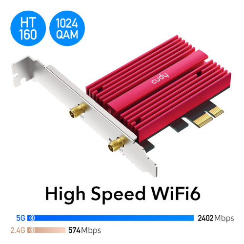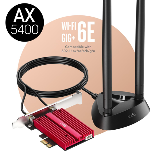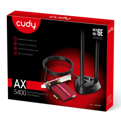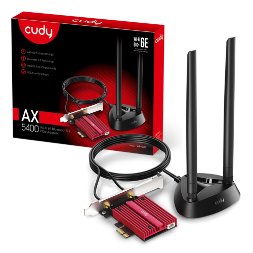 Cudy AX5400 Wi-Fi 6E PCI-Express sieťová karta, Tri-Band, ext. anténa so stojanom (WE4000)