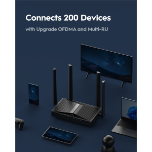 • vysoká prenosová kapacita a nízka latencia vďaka podpore 160MHz pásma a technológiám MRU/OFDMA (efektívnejší prenos) a MU-MIMO (prenos viac kanálmi súčasne)