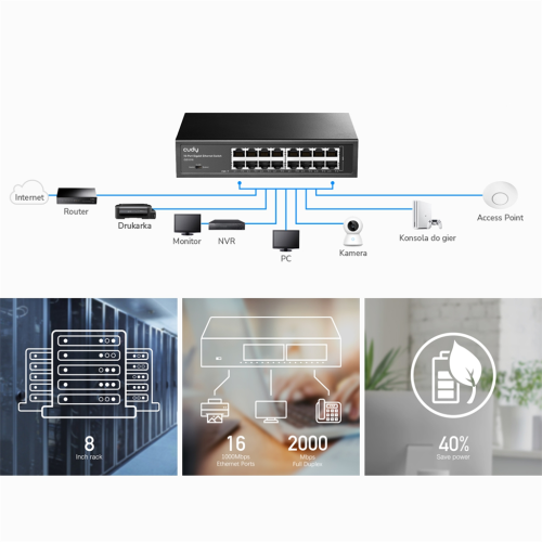 Cudy switch 16portový Gigabit, kovový (GS1016)