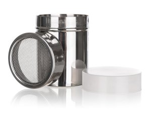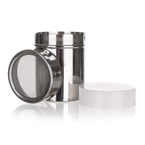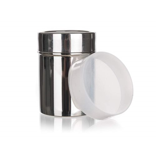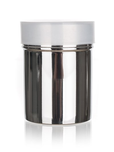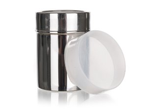 Nerezová cukornička s plastovým viečkom AKCENT má jemné sitko, ktoré je vhodné napr. na práškový cukor.