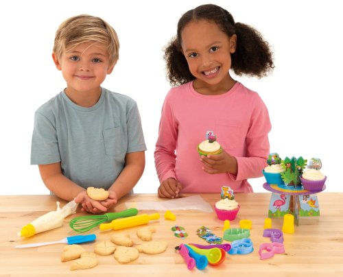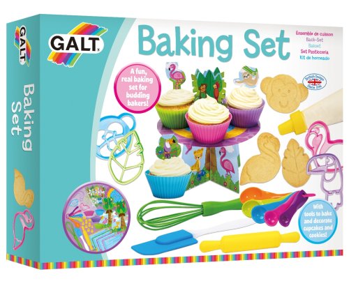 Zábavná sada na ozajstné pečenie obsahujúca náčinie v žiarivých farbách. Môžeš piecť tortičky a sušienky, zdobiť ich pomocou zdobiacej sady na polevu a vystaviť ich na podnose. Sada obsahuje štyri karty s jednoduchými receptami na vanilkové a čokoládové tortičky, sušienky a vanilkovú polevu. Obsah: valček, špachtľa, metla, 5 odmeriek, 4 vykrajovače na sušienky, 4 opakovane použiteľné silikónové košíčky na tortičky, 2 opakovane použiteľné vrecká na polevu a 5 zdobiacich trysiek, podnos, 8 tortových ozdôb, 4 karty s receptami a návod