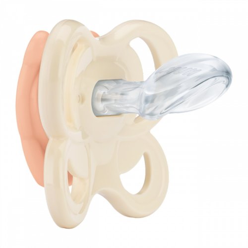 Sacia časť je vyrobená z mäkkého, vysoko kvalitného silikónu a má premyslený tvar: horná časť je extra mäkká, takže sa jemne prispôsobí podnebiu dieťaťa, zatiaľ čo plochá spodná strana poskytuje jazýčku dostatok priestoru pre prirodzený pohyb. Podporuje zdravý sací reflex.
