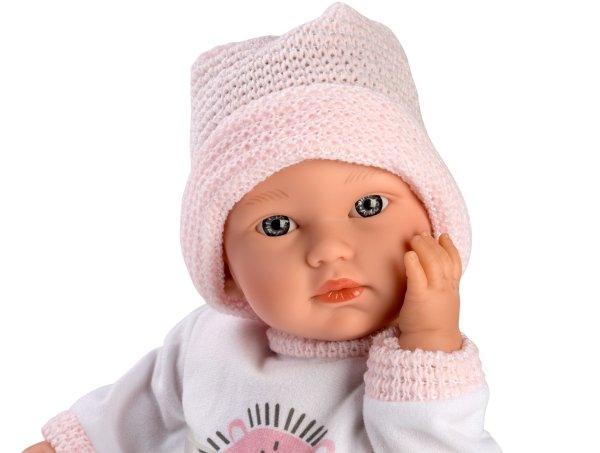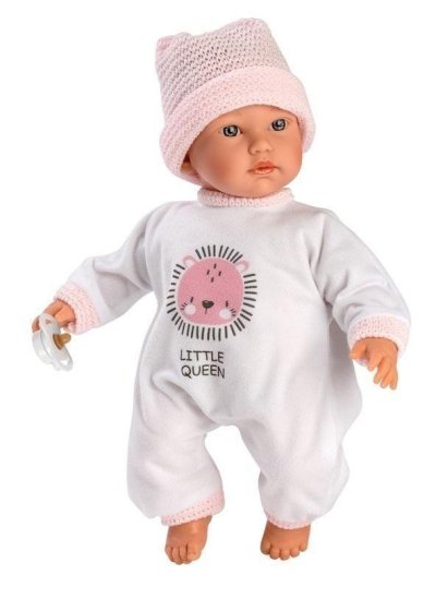 Hovoriace bábätko s mäkkým látkovým telom, ktoré po zatlačení na hrudník začne hovoriť „mama“, „papa“ a vydávať reálny zvuk plačúceho bábätka. Hlava a končatiny sú vyrobené z kvalitného mäkčeného vinylu. Veľkosť 30 cm, ručná výroba Španielsko. Cumlík v balení slúži iba ako doplnok. Odporúčaný vek od 3 rokov. K bábätku je možné dokúpiť ďalšie originálne oblečenie z ponuky Llorens pre bábiky veľkosti 30 cm. Súčasťou balenia je 3 x gombíková batéria LR44 s návodom na jej výmenu. Batérie sú spotrebný tovar a preto ich vybitie nie je dôvodom na reklamáciu bábiky.
