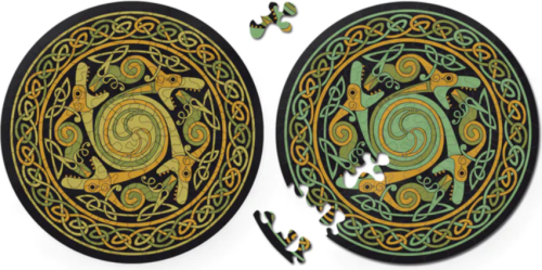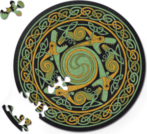dva motívy v jednom puzzle = dvojnásobná výzva, neobvyklé tvary dielikov, vysoko kvalitné drevené dieliky, pevná krabička s kovovým viečkom, ideálna ako darček.