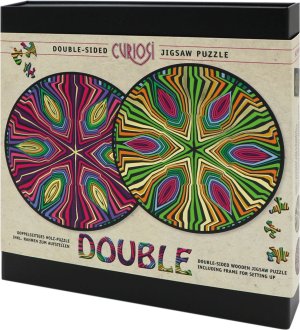 Puzzle Curiosi Double-Box – hlavné vlastnosti: dva motívy v jednom puzzle = dvojnásobná výzva, neobvyklé tvary dielikov, vysoko kvalitné drevené dieliky, efekt zlatého lesku, dodávané s rámčekom 235 x 235 mm.