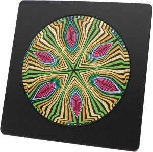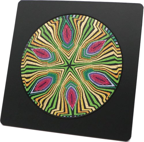 dva motívy v jednom puzzle = dvojnásobná výzva, neobvyklé tvary dielikov, vysoko kvalitné drevené dieliky, efekt zlatého lesku, dodávané s rámčekom 235 x 235 mm.