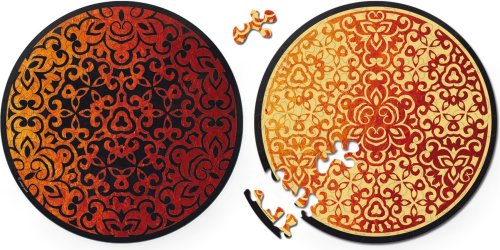 dva motívy v jednom puzzle = dvojnásobná výzva, neobvyklé tvary dielikov, vysoko kvalitné drevené dieliky, pevná krabička s kovovým viečkom, ideálna ako darček.