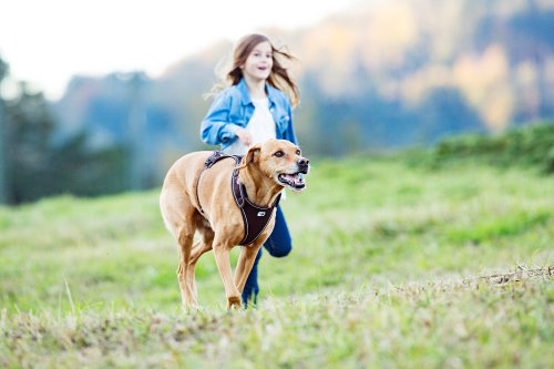 Ľahký a pohodlný postroj pre väčšie psy, ktorý sa dokonale prispôsobí telu vášho psa a je možné ho individuálne nastaviť v oblasti hrudníka. Ťažná sila sa tak rozloží na celé telo a nie je len na citlivú oblasť krku. .