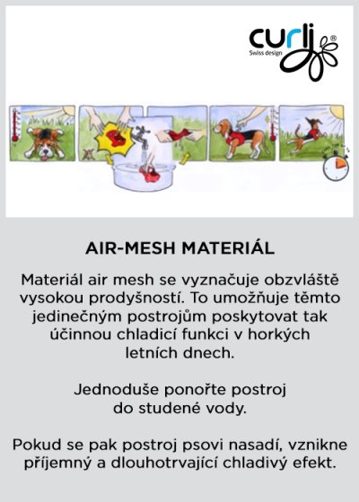 • chladiaci účinok pri ponorení do vody – vzdušný materiál postroja sa vyznačuje extrémne vysokou priepustnosťou vzduchu, a tak môže v horúcich letných dňoch poskytovať účinnú chladiacu funkciu. Postroj jednoducho ponorte do studenej vody. Pokiaľ ho potom nasadíte na psa, vytvorí príjemný a dlhotrvajúci chladivý účinok.