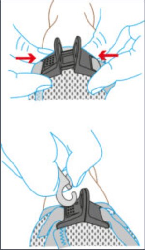 Vodítko a postroj je možné pripnúť jednou rukou pomocou spony. Vysoko pevný materiál spony vydrží ťahové zaťaženie až 100 kg. Táto spona eliminuje „cvakavý“ zvuk klasických D krúžkov.