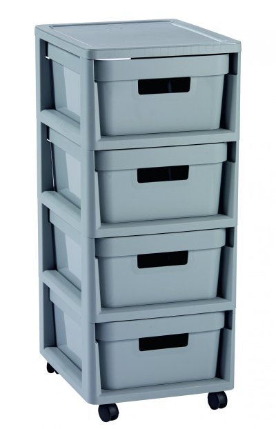 Jednoduchý spôsob usporiadania domácich potrieb – nech konečne všetky drobnosti nájdu svoje stále miesto! Policový diel je vybavený štyrmi objemnými zásuvkami s pohodlnými úchytkami. Vďaka jednoduchému škandinávskemu štýlu sa policový diel uplatní v kúpeľni, spálni, obývacej izbe alebo v šatni. Pohodlné používanie tiež zaisťujú kolieska, umožňujúce premiestňovanie ponuku, a ľahko sa udržujúca hladká povrchová úprava. Veľkosť 30x36x69cm.