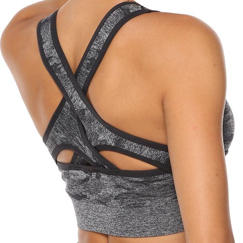 Dámska športová podprsenka s prekríženými ramienkami na chrbte.