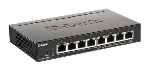 D-Link DGS-1100-08PV2 je 8-portový Gigabit Smart riadený PoE prepínač v kompaktnom kovovom prevedení bez ventilátorov, na položenie na stôl, na poličku alebo montáž na stenu. Všetkých 8 portov 10/100/1000M RJ-45 podporuje PoE+ napájanie podľa 802.3af / 802.3at (max. 30W na port). Celkový PoE výkon prepínača je 64W. Switch ponúka základnú sadu L2 funkcií (napr. VLAN, QoS, IGMP Snooping, agregácia liniek) s možnosťou správy z webového rozhrania, pomocou SNMP príkazov alebo nástroja D-Link Network Assistant (DNA). Switch je určený predovšetkým pre kancelárie (SOHO), malé a stredné podniky (SMB) a kamerové systémy (CCTV).