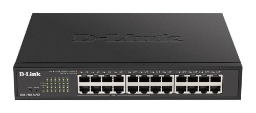 D-Link DGS-1100v2 je nová generácia Gigabit Smart riadených prepínačov určených pre malé a stredné podniky (SMB), pracovné skupiny (workgroup) a kancelárie (SOHO). Model DGS-1100-24Pv2 je osadený 24 metalickými portami 10/100/1000Base-T RJ-45, z ktorých 12 portov podporuje napájanie Power over Ethernet podľa 802.3af a 802.3at (max. 30W/port). Celkový PoE výkon prepínača je 100W. DGS-1100-24Pv2 je v kovovom prevedení o veľkosti 1U a šírke 11" (28cm). Súčasťou dodávky sú držiaky pre inštaláciu do 19" rozvádzača. Prevedenie bez vetrákov zaisťuje tichý chod, switch je možné umiestniť aj priamo v kancelárii na stôl či poličku.
