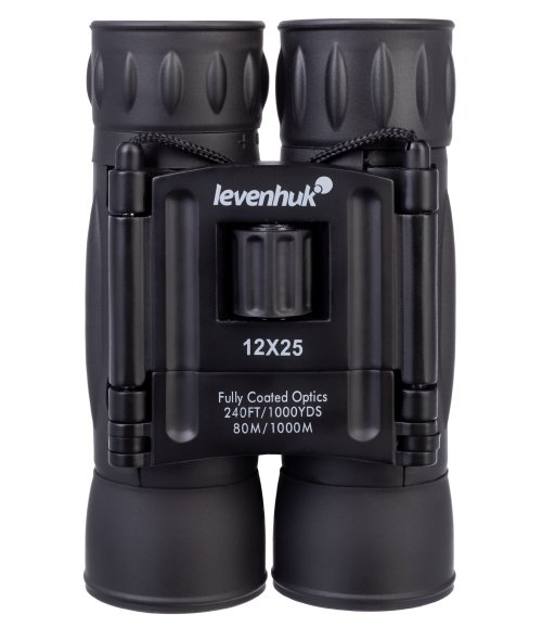 Optika s antireflexnou vrstvou na všetkých aktívnych plochách zaisťuje čistý, jasný obraz vo verných farbách. Plášť binokulárneho ďalekohľadu Levenhuk Atom 12 x 25 je opatrený gumovou povrchovou úpravou.