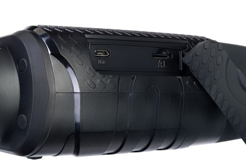 Binokulárne ďalekohľady majú ergonomické telo odolné proti kvapkám, majú protišmykový povrch. Binokulárne ďalekohľady je možné veľmi pohodlne uchopiť. Keď ich zdvihnete, ovládacie tlačidlá budú priamo pod vašimi prstami. Zariadenie je napájané štandardnými batériami, ktoré nájdete vo väčšine obchodov, av poľných podmienkach je oveľa jednoduchšie vymeniť sadu batérií, než hľadať zásuvku na nabíjanie batérie. Jedno nabitie stačí na približne 4-10 hodín nepretržitej prevádzky , doba životnosti batérie závisí od toho, ako intenzívne sa IR osvetlenie používa.
