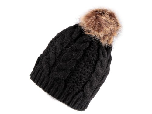 Dámska / dievčenská zimná čiapka s brmbolcom - čierna