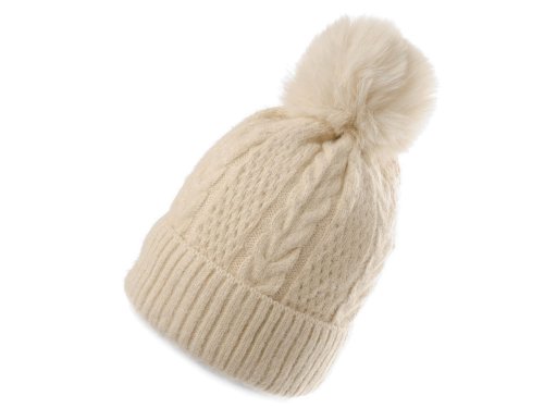 Dámska / dievčenská zimná čiapka s brmbolcom Emi Ross - ecru