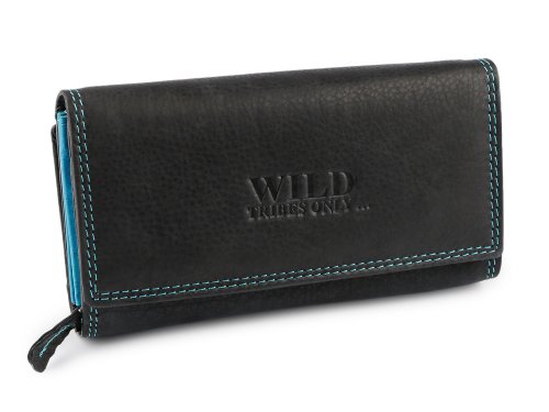 Dámska kožená peňaženka 9,5x17 cm - čierna tyrkys