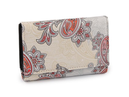 Elegantná dámska peňaženka má veľmi kvalitné prevedenie. Nadchne vás svojím poťahom [s paisley motívom][. Vnútri] má vynikajúce usporiadanie s množstvom priehradiek a vreciek. Zatvára sa na klopu a patent. Vnútri sú 2 oddelené priestory. Po pravej strane sú 4 priehradky na karty, z toho je 1 priehľadná. Pod nimi je 1 veľké ploché vrecko. Uprostred peňaženky sa nachádzajú 2 vrecká na bankovky, v jednom je malé vrecko na zips. Vľavo je mincovník, ktorý sa zapína na zips. Peňaženka ukrýva ešte druhý oddiel, ktorý sa objaví po odopnutí zápinky na ľavej strane. Tu sa nachádza 6 priehradiek na kreditné karty a 5 plochých vreciek.