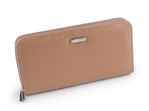 Veľká dámska peňaženka je vyrobená zo syntetického materiálu, ktorý vyzerá ako koža. Vďaka svojmu modernému dizajnu s krokodílím vzorom pôsobí štýlovo, stane sa vašou obľúbenou spoločníčkou. Zapína sa na zips. Vnútri sa nachádzajú tri priehradky na bankovky a jedno vrecko s otváraním na zips, slúžiace na uschovanie mincí. Na vnútorných stranách peňaženky potom nájdete priehradky na uloženie kariet či dokladov.