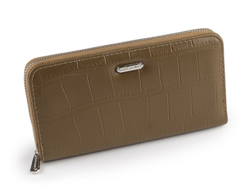 Veľká dámska peňaženka je vyrobená zo syntetického materiálu, ktorý vyzerá ako koža. Vďaka svojmu modernému dizajnu s krokodílím vzorom pôsobí štýlovo, stane sa vašou obľúbenou spoločníčkou. Zapína sa na zips. Vnútri sa nachádzajú tri priehradky na bankovky a jedno vrecko s otváraním na zips, slúžiace na uschovanie mincí. Na vnútorných stranách peňaženky potom nájdete priehradky na uloženie kariet či dokladov.