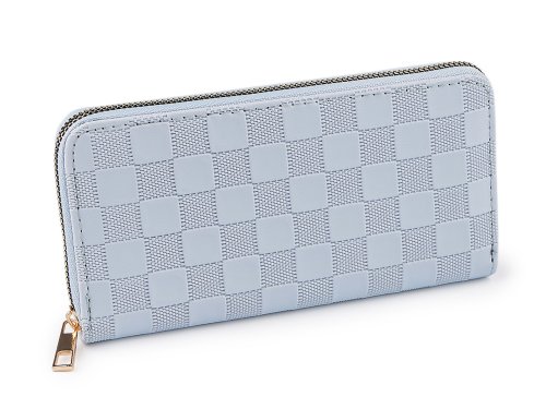 Dámska peňaženka s povrchovou kockovanou štruktúrou je elegantným a štýlovým doplnkom, ktorý upúta pozornosť. Peňaženka obsahuje jedno hlavné vrecko, ktoré sa zapína na kovový zips. Vnútri je peňaženka členená do troch veľkých priehradiek na papierové bankovky a jedného uzatvárateľného vrecka na zips, vhodné na ukladanie mincí a rôznych drobností. Po vnútorných stranách peňaženky sú priehradky na karty a dve väčšie na doklady, účtenky a pod.