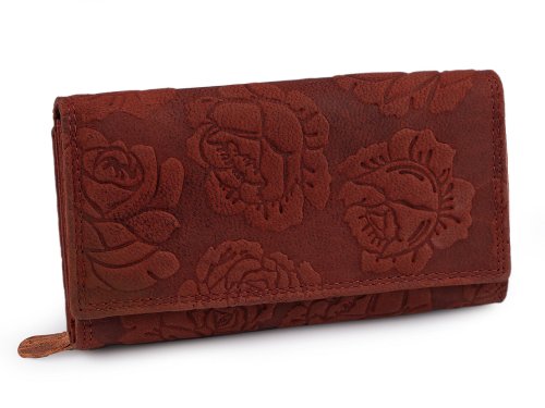 Luxusná dámska peňaženka z pravej kože má veľmi kvalitné prevedenie a šikovný dizajn. Má elegantný povrch s veľkými razenými kvetmi. Peňaženka č. 1 - 9] má prednú stranu na klopu s 2 patentmi. Ponúkne svojej majiteľke veľké množstvo vreciek a priehradok. Okrem veľkého úložného priestoru na bankovky, má aj uzatvárateľné vrecko na mince, vrecko na doklady, miesto na uloženie 10 platobných alebo vernostných kariet a mnoho ďalších vreciek na vaše použitie. Peňaženky č. 10 – 18 sú dlhé 17 cm. Klopu na patent majú z prednej aj zadnej strany. Ponúknu svojej majiteľke veľké množstvo vreciek a priehradok. Okrem veľkého úložného priestoru na bankovky, majú aj uzatvárateľné vrecko na mince, vrecko na doklady, miesto na uloženie 21 platobných alebo vernostných kariet a mnoho ďalších vreciek. Upozorňujeme zákazníkov, že odtiene peňaženiek sa môžu mierne líšiť. [Niektoré peňaženky môžu mať zips zo zadnej strany alebo môžu mať zapínanie na pracku.]