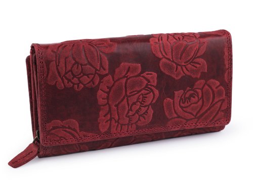 Luxusná dámska peňaženka z pravej kože má veľmi kvalitné prevedenie a šikovný dizajn. Má elegantný povrch s veľkými razenými kvetmi. Peňaženka č.1 - 9] má prednú stranu na klopu s 2 patentmi. Ponúkne svojej majiteľke veľké množstvo vreciek a priehradok. Okrem veľkého úložného priestoru na bankovky, má aj uzatvárateľné vrecko na mince, vrecko na doklady, miesto na uloženie 10 platobných alebo vernostných kariet a mnoho ďalších vreciek na vaše použitie. Peňaženky č.10 – 18 sú dlhé 17 cm. Klopu na patent majú z prednej aj zadnej strany. Ponúknu svojej majiteľke veľké množstvo vreciek a priehradok. Okrem veľkého úložného priestoru na bankovky, majú aj uzatvárateľné vrecko na mince, vrecko na doklady, miesto na uloženie 21 platobných alebo vernostných kariet a mnoho ďalších vreciek. Upozorňujeme zákazníkov, že odtiene peňaženiek sa môžu mierne líšiť. [Niektoré peňaženky môžu mať zips zo zadnej strany alebo môžu mať zapínanie na pracku.]