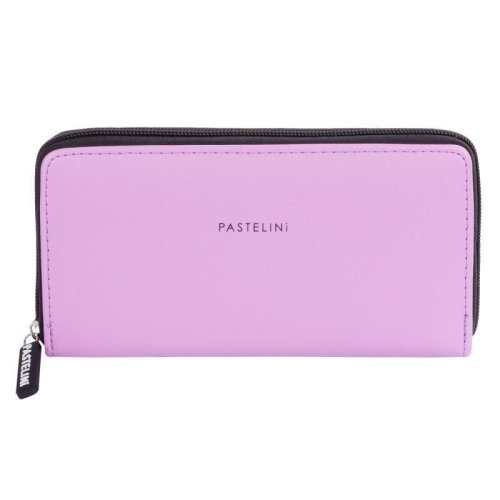 Veľká dámska peňaženka vo fialovom prevedení. Vnútri je 8 menších vreciek na vernostné karty, 2 väčšie vrecká, 3 oddelené priehradky na hotovosť a 1 uzatvárateľné vrecko na zips na drobné mince.